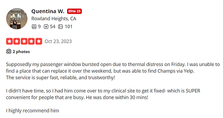 Champs Auto Glass is truly a full-service auto glass company. We've earned a reputation as experts in repairing and replacing damaged windshields and auto glass. We can perform most jobs on-site meaning we can bring the shop to you through our convenient and professional mobile service. We handle everything from repairing a chipped auto glass to a major windshield replacement thus earning the trust and respect of locals in Bay Area and Los Angeles, CA
